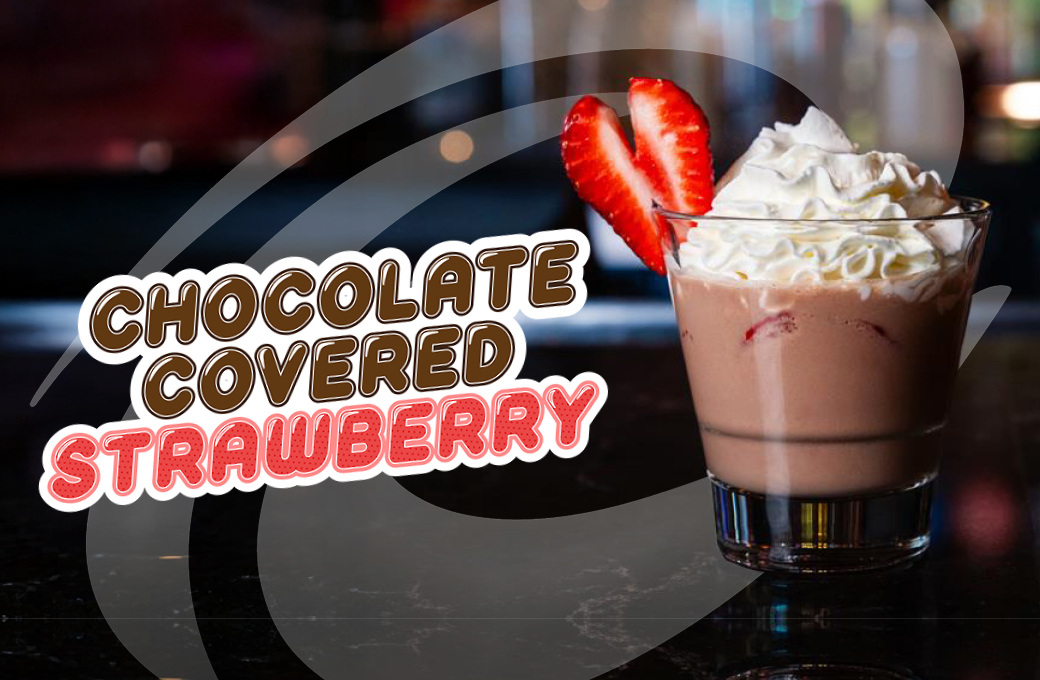 Crown Royal Vanilla, Crown Royal Chocolate, Finest Call strawberry puree, half & half, chocolate syrup, whipping cream, and strawberries.